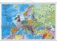 Wandkarte Europa, einseitig mit Folie beschichtet, dadurch beschreib- und abwischbar, mit Metalleisten und Aufhängeschnur versehen.