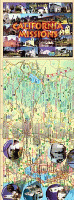 Accordion-style folded, laminated map of California missions with photographs and text. Features inset maps with every description. Covers 21 historic missions with 3 Asistencias.