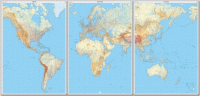 Welt physisch - 3 Karten PLANO-Karten laminiert 1:14 Mio. (Gesamtformat: ca. 285 x 130 cm) - gerollt, World physical flat map 3-sheets, IGN