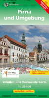 Topographische Wanderkarte mit Wanderwegen und Radwanderrouten. Mit Stadtplan von Pirna.