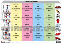 Anschauliches Lernen der Pronomen - samt den abgeleiteten Formen. Die Rückseite enthält den Inhalt der Vorderseite in stummer Version zum selbst Beschriften.
