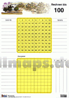 Anschauliches Lernen der Grundrechenarten bis 100 im Diagonalsystem. Die untere Hälfte der Lerntafel enthält jeweils eine Übungstafel zum selbst Beschriften.
