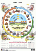Anschauliches Lernen der Monate und Jahreszeiten. Die Rückseite enthält den Inhalt der Vorderseite in stummer Version zum selbst Beschriften.