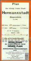 Vorderseite: Plan der königlich freien Stadt Hermannstadt (Nagyszeben) um 1900 Maßstab 1:4000, deutsch, gezeichnet von Heinrich Wolf mit deutschem Gebäude- und Straßenverzeichnis Hermannstadt gehörte zu diesem Zeitpunkt noch der Donaumomarchie, Königreich Ungarn, an.