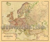 Nachdruck gerollt, Format (Breite x Höhe) 84 x 70 cm. Grenz-und flächenkolorierte Karte. Eduard Gaeblers Verkehrskarte. Maßstab 1: 5 000 000. Darstellung 27 % verkleinert zum Original. Zeigt Europa vor dem Angriff Deutschlands auf die Sowjetunion. [Lieferung in einer sehr stabilen Pappversandhülse - bis 72 cm lang - 250 g] Staaten Europas auf der Karte: Sowjetunion, Finnland; Schweden; Norwegen; Östreichisch-Ungarische Monrachie mit Bosnien und Herzegowina, Deutsches Reich; Frankreich; Spanien; Großbritannien und Irland mit Gibraltar und Malta; Italien; Eropäische Türkei; Albanien; Bulgarien Athos (autonom); Rumänien; Portugal einschl. Azoren und Madeira; Griechenland; Serbien; Schweiz; Dänemark mit den Färöer und Island; Niederlande; Luxemburg; Belgien; Montenegro; Andorra; Liechtenstein; San Marino und Monaco.