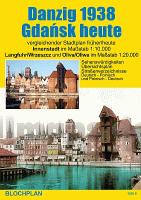 Innenstadt im Maßstab 1 :10.000 Langfuhr/Wrzeszcz und Oliva/Oliwa im Maßstab 1:20.000 Im gut lesbaren Maßstab 1:10.000 ist auf der Hauptseite nebeneinander ein neu gezeichneter Plan von 1938 und ein aktueller Plan in gleicher Darstellung und Größe enthalten. Der Plan stellt das Gebiet des von den westlichen Hügeln Hagelsberg und Bischofsberg und vom Mottlau-Umfluter eingefassten Festungsbereiches Danzigs dar, über den auch im Jahr 1938 die Stadt nur nach Nordosten maßgeblich hinausgewachsen war. Hier liegen die historischen Stadtteile Rechtstadt, Altstadt, Vorstadt, Jungstadt, Speicherinsel, Langgarten, Niederstadt, Kneipab, Neugarten und Petershagen und auch ein Großteil der historischen Werften am Ufer der Toten Weichsel. Die seither vor allem nach Westen stark gewachsene Stadt hat auch heute noch ihr Zentrum in diesem Bereich und nach der massiven Kriegszerstörung, dem historisch getreuen Wiederaufbau der Rechtstadt und der Anlage stadtzerschneidender Autotrassen füllen sich gerade in den letzten Jahren die Stadtteile östlich der Mottlau nach und nach wieder mit Wohnbauten, Hotels und Kultureinrichtungen. Auch auf dem heute weitgehend stillgelegten Gelände der früheren Schichau- und späteren Lenin-Werft (Solidarność) entstehen derzeit neue Straßen und Bauten. Der am Wege nach Oliva und Zoppot nordwestlich angrenzende Stadtteil Langfuhr war 1938 als "bessere" Wohngegend vor allem wegen des Jäschkentaler Waldes aber auch durch den Standort der Technischen Hochschule und das Städtische Krankenhaus bekannt. Auch das heutige Wrzeszcz ist eine beliebte Wohngegend, die außerdem als Einkaufsgegend für die nordwestlichen Stadtteile fungiert. Deshalb ist Langfuhr/Wrzeszcz im Maßstab 1:20.000 auf der Hauptkarte dargestellt. Auf der Rückseite gibt es neben den Straßenverzeichnissen Polnisch-Deutsch und Deutsch-Polnisch und einer Kurzbeschreibung der wichtigsten 27 Sehenswürdigkeiten einen aktuellen Plan des Stadtteiles Oliwa/Oliva in dem das berühmte Kloster mit dem Schloss der Äbte und dem Park steht. Die 1937 gültigen Straßennamen sind hier in Rot neben den aktuellen Namen verzeichnet. Eine Überlagerungskarte des zentralen Bereiches der Stadt auf der über dem Plan von 1938 in Rot das heutige Straßennetz mit den polnischen Straßennamen dargestellt ist, verdeutlicht, wie originalgetreu der Wiederaufbau der Rechtstadt nach der Kriegszerstörung stattgefunden hat. Er macht aber auch klar, dass die modernen Verkehrsschneisen weite Teile der historischen Stadt überlagern und dass in den anderen Teilen der Innenstadt die aktuellen Straßenverläufe nur bedingt den früheren entsprechen. Ein Übersichtsplan im Maßstab 1:100.000 stellt (westlich an die o.g. Landkarte "Westpreußen?" anschließend) das Stadtgebiet zwischen Zoppot/Sopot, Schönfeld/Łostowice und Heubude/Stogi mit allen deutschen und polnischen Ortsnamen dar.