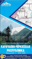 Topographische Landkarte der Republik Karatschai-Tscherkessien mit kleiner administrativer Karte. Die Rückseite der Landkarte enthält einen Umgebungsplan Tscherkessk sowie zwei weitere Detailkarten im Maßstab 1:100.000.