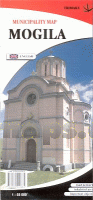 Landkarte der Gemeinde Mogila in Mazedonien. Mit Stadtplan und Zentrumplan. Touristische Erläuterungen auch in englischer Sprache.
