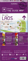 Die Karte enthält einen kleinen Übersichtsplan von Laos mit 15 Markierungen, die beidseitig, jeweils nummeriert in kleinen extra Stadtplänen dargestellt werden. Dazu zählen Downtown Vientiane, Luang Probang, Houay Xay, Luang Namtha, Xay, Sing, Savannakhet, Vang Vieng, Xayaboury, Sam Nuea, Phone Savan, Thakhek, Si Phan Don, Downtown Pakse und Champasak.