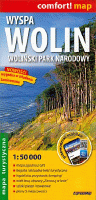 Touristische Wanderkarte für die Insel Wollin. Die Rückseite der Landkarte enthält Stadtpläne von Wolin (Wollin), Karmien Pomorski (Cammin in Pommern), Dziwnow (Dievenow), Swinoujscie (Swinemünde) und Miedzyzdroje (Misdroy).