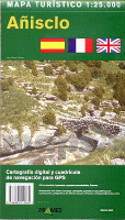 Topographische touristische Wanderkarte der Añisclo-Schlucht (Cañón de Añisclo) bei Ordesa in den spanischen Pyrenäen. Die Rückseite enthält 8 Wanderbeschreibungen auf englisch, französisch und spanisch.