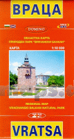 Detaillierter Stadtplan von Wraza (Bulgarien) mit kyrillischen Straßennamen. (Größere Straßen auch mit lateinischer Beschriftung). Namen der Stadtteile, die Legende, eine kurze Ortbeschreibung und touristische Informationen auch auf englisch. Mit Umgebungskarte.