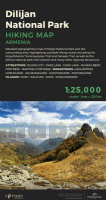 Detailed topographical map of Dilijan National Park and the surrounding area, highlighting available hiking routes including the long-distance Transcaucasian Trail and Janapar Trail, as well as the official national park trail network and many more regional attractions. Attractions: Dilijan city, Parz Lake, Gosh Lake, Aghjka Berd fortress, Mantash fortress. Monasteries: Haghartsin, Goshavank, Aghavnavank, Jukhtakvank, Matosavank Villages: Gosh, Kalavan, Hovk, Khachardzan. 5 % of each map sold is used to maintaine the local trail network.