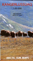 Detaillierte topographische Trekkingkarte rund um Kangerlussuaq / Grönland - mit UTM-Gitter und zahlreichen Wanderwegen, 20 m Höhenlinienabstand. Die Rückseite enthält einen Plan vom Flughafen und dem Ort. Doppelseitig laminiert.