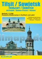 Vergleichender Stadtplan Tilsit / Sowjetsk im Maßstab 1:12.000 mit Karte von Ragnit/Njeman Aktueller Stadtplan des heutigen Sowjetsk (gesamtes Stadtgebiet), direkt vergleichbar mit in gleichem Maßstab und gleicher Darstellung neu gezeichnetem Plan von Tilsit (innere Stadt). Aktueller Stadtplan von Njeman/Ragnit mit früheren deutschen Straßennamen und Gebäudenutzungen. Die aktuellen Straßennamen in Kyrillisch und lateinischer Umschrift. Außerdem in rot die ehem. deutschen Namen der heutigen Straßen. Auf dem Rückblatt Umgebungskarte Sowjetsk - Njeman im Maßstab 1:100.000. Der Plan verdeutlicht, wie sich die Stadt durch Kriegs- und Nachkriegszerstörung, durch den Austausch der Bevölkerung und durch die sozialistische sowjetische Stadtplanung verändert hat und was dennoch an historischer Stadtstruktur und Gebäuden aus deutscher Zeit vorhanden ist. Straßenverzeichnisse Russisch-Deutsch und Deutsch-Russisch (die russischen Namen sowohl in Kyrillisch, als auch in Latein-Umschrift), ein Verzeichnis der Sehenswürdigkeiten und eine Liste der Straßenumbenennungen nach 1933 bis 1945 vervollständigen die Plandarstellungen.