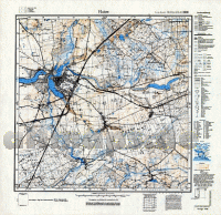 Historische topographische Karte vom ehemaligen Reichsamt für Landesaufnahme der ehemals deutschen Ostgebiete (Schlesien, Pommern, Ostpreußen) Blattschnitte der historischen Topografischen Karte des Deutschen Reiches aus dem Zeitraum ca. 1911-1944 Beispiele für dreifarbige bzw. einfarbige Karte © Bundesamt für Kartographie und Geodäsie www.bkg.bund.de (Die Rechte an allen hier abgebildeten Blattschnitten liegen bei o.g. Bundesamt.) HINWEISE: Die kleinen Quadrate kennzeichnen die Einzelblätter 1:25.000. Grüne Schrift: Nur die auf Reichsgebiet liegenden Anteile sind enthalten. Schwarze Ecke: Blatt liegt dreifarbig vor, sonst einfarbig Die großen grauen Rechtecke mit grauer Nummer zeigen die Blattschnitte der Karte des Deutschen Reiches 1:100.000 Lieferbar sind ggf. außerdem die Kreiskarten 1:100.000 (siehe rot markierte Kreisgrenzen).