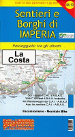 Topographische Wanderkarte von Imperia. Die Karte enthält zusätzliche Kartenausschnitte von Cervo 1:3.500, Imperia Porto Maurizio 1:10.000, Imperia Oneglia 1:10.000 und Diano Marina. Die Karte ist auch für Mountainbikefahrer geeignet.