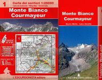 1 Monte Bianco Courmayeur - Topographische Wanderkarte 1:25.000 (wasserfest) Carta dei Sentieri L` escursionista editore - Italien
