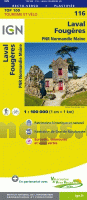 116 Laval - Fougères Topographische Touristische Landkarte Tourismus und Fahrrad (wasserfest) - tourisme et vélo plastifiée TOP100 - 1:100.000 - IGN Frankreich