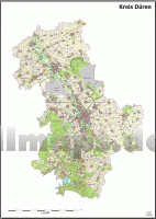 Große topographische Kreiskarte vom Landkreis Düren (Poster). Mit Gemeindegrenzen.