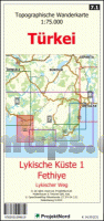 Lykische Küste 1 - Fethiye - Lykischer Weg - Topographische Wanderkarte 1:75.000 Türkei (Blatt 7.1) Landkarte ProjektNord