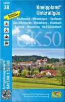 UK 50-38 Kneippland Unterallgäu - Memmingen - Mindelheim Wanderkarte Bayern 1:50.000 mit Wanderwegen, mit Radwanderwegen, GPS-Gitter Bayerisches Landesvermessungsamt