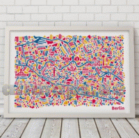 Das Plakat mit dem Berlin-Motiv enthält unter anderem die Sehenswürdigkeiten Brandenburger Tor, Reichstag, Berliner Fernsehturm, Tiergarten, Alexanderplatz, Gedächtniskirche, Schloss Charlottenburg, Museumsinsel, Potsdamer Platz, Siegessäule, Spree, Unter den Linden, Kurfürstendamm & Bode-Museum.Stadtplan Berlin Poster, Siegermotiv 100-Beste-Plakate, Silber-Auszeichnung Joseph-Binder-Award, Nominierung German Design Award. Poster, Bilderdruckpapier matt, kräftige 250g/qm, 4-farbiger Offsetdruck. Das ungerahmte Berlin-Poster wird natürlich sorgfältig verpackt: zuerst kommt es in eine Schlauchfolie und dann in eine stoßfeste Versandhülse. Dadurch eignet es sich auch gleich als bereits verpacktes Geschenk!
