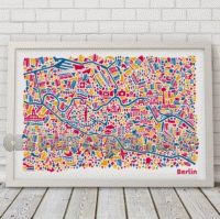 Das Plakat mit dem Berlin-Motiv enthält unter anderem die Sehenswürdigkeiten Brandenburger Tor, Reichstag, Berliner Fernsehturm, Tiergarten, Alexanderplatz, Gedächtniskirche, Schloss Charlottenburg, Museumsinsel, Potsdamer Platz, Siegessäule, Spree, Unter den Linden, Kurfürstendamm & Bode-Museum.Stadtplan Berlin Poster, Siegermotiv 100-Beste-Plakate, Silber-Auszeichnung Joseph-Binder-Award, Nominierung German Design Award. Poster, Bilderdruckpapier matt, kräftige 250g/qm, 4-farbiger Offsetdruck. Das ungerahmte Berlin-Poster wird natürlich sorgfältig verpackt: zuerst kommt es in eine Schlauchfolie und dann in eine stoßfeste Versandhülse. Dadurch eignet es sich auch gleich als bereits verpacktes Geschenk! Kartenbeispiel