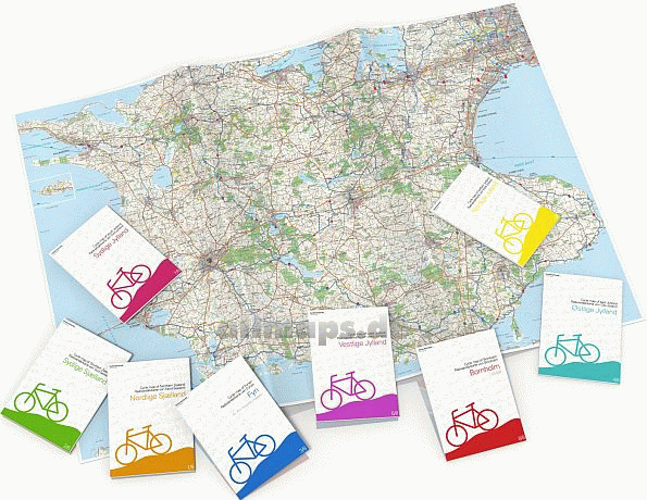 Hier finden Sie die dänische Radwanderkarten Serie von Nordisk Korthandel. |